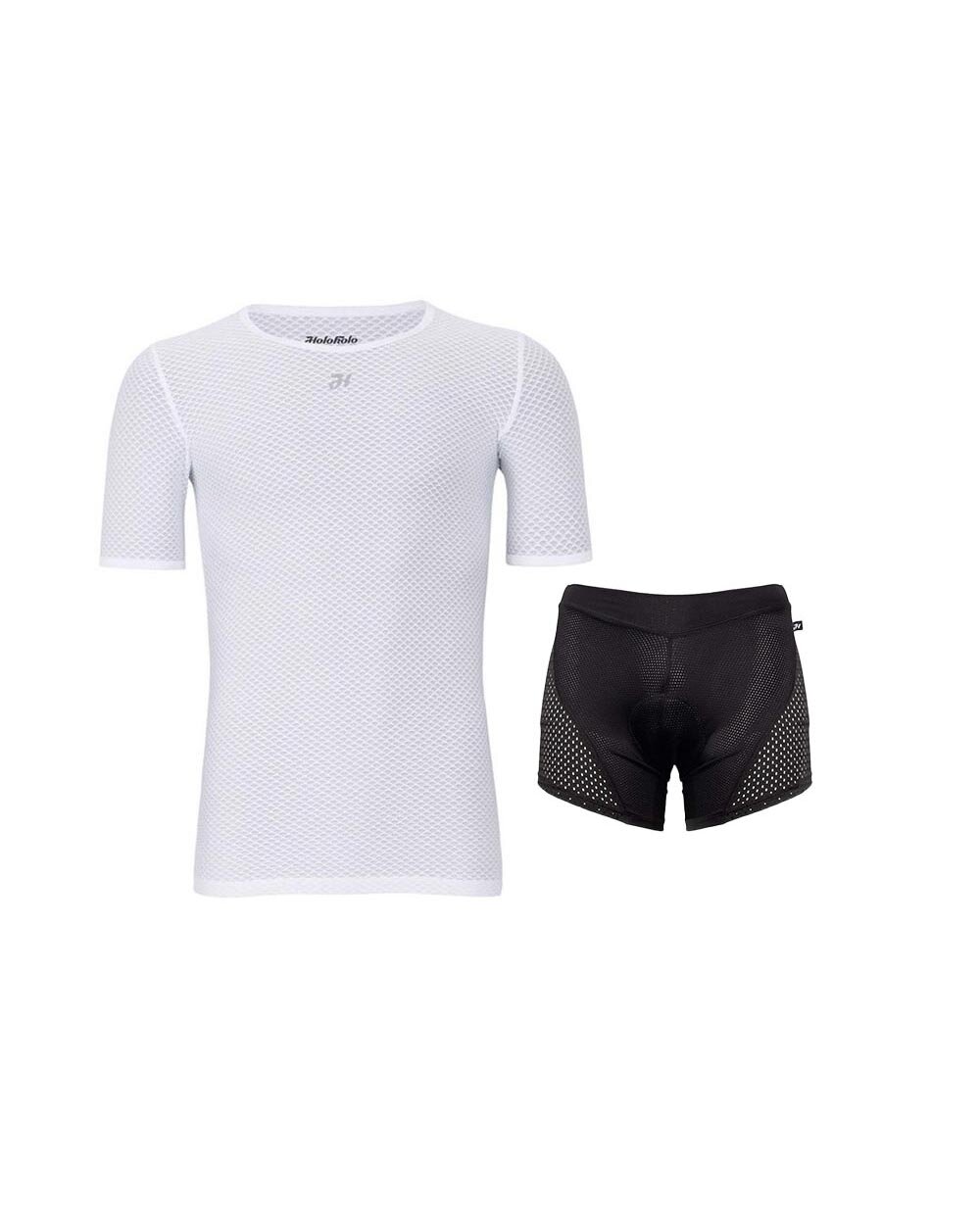 Remek, funkcionális szett minden kerékpáros számára! A könnyű és légáteresztő hálós trikó elvezeti az izzadságot, szabályozza a hőmérsékletet és szárazon tart még forró napokon is. A kerékpáros béléssel ellátott boxeralsó maximális kényelmet, védelmet és mozgásszabadságot biztosít - akár hosszú utakon, akár kihívást jelentő lejtőkön. Ez a sokoldalú szett megbízható alapréteg a kerékpáros élményhez.