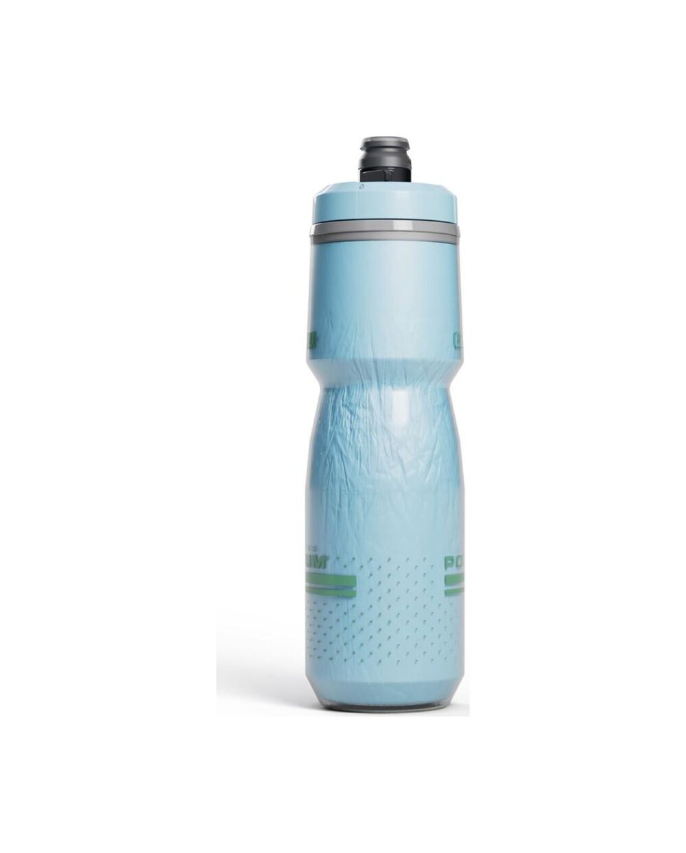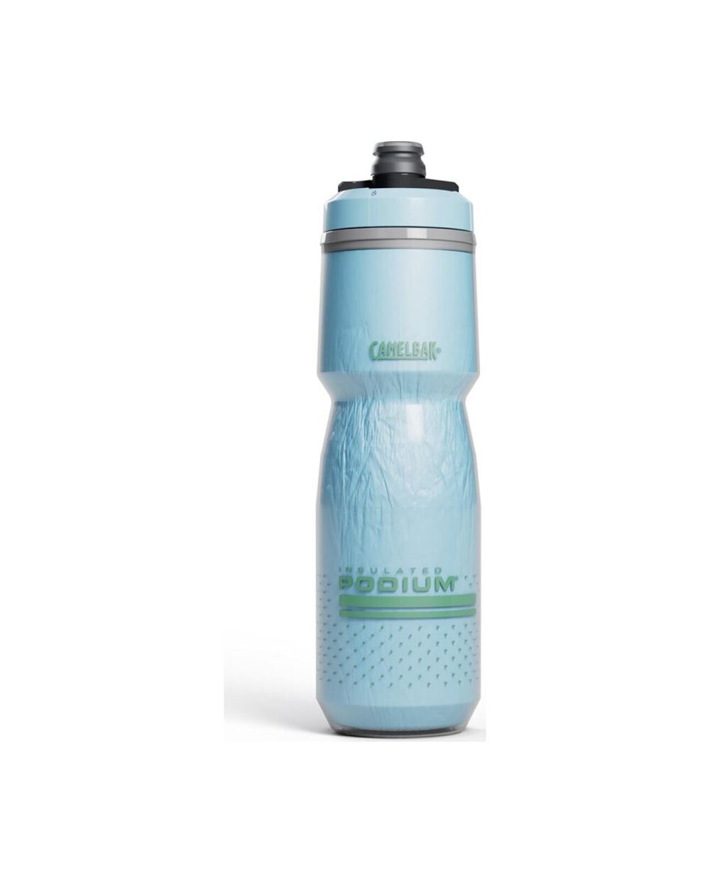 A CamelBak Podium Chill szigetelt palackok a dupla falnak köszönhetően kétszer hosszabb ideig tartják az ital hőmérsékletét egy normál palackhoz képest. BPA, BPS és BPF mentes polipropilénből készülnek, ami garantálja az ital valódi ízét a műanyag utóíze nélkül. Az orvosi szilikonból készült, szabadalmaztatott önzáró Jet Valve hegynek köszönhetően a palackból nem folyik a víz a keretre. Ezenkívül komplett forgó kupakkal (lock-out) van felszerelve a teli palackok zsákban vagy autóban történő szállításához.