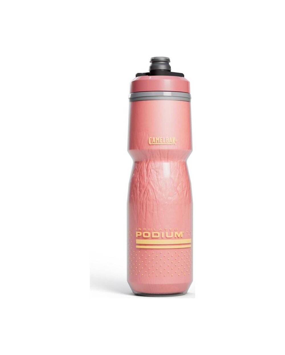 A CamelBak Podium Chill szigetelt palackok a dupla falnak köszönhetően kétszer hosszabb ideig tartják az ital hőmérsékletét egy normál palackhoz képest. BPA, BPS és BPF mentes polipropilénből készülnek, ami garantálja az ital valódi ízét a műanyag utóíze nélkül. Az orvosi szilikonból készült, szabadalmaztatott önzáró Jet Valve hegynek köszönhetően a palackból nem folyik a víz a keretre. Ezenkívül komplett forgó kupakkal (lock-out) van felszerelve a teli palackok zsákban vagy autóban történő szállításához.
