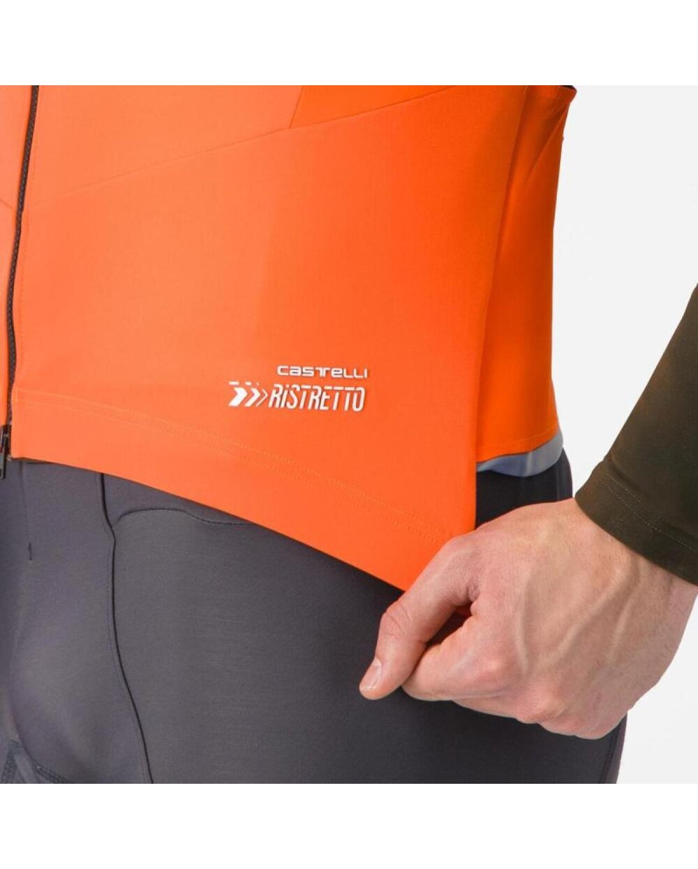 A CASTELLI Ristretto anyagtechnológia sokoldalúvá teszi. Anyaga légáteresztő, így szélálló, de nagyon kevés levegőt enged be, ami segít több verejték elvezetésében és szárazon tartásában. Az eleje a Ristretto anyag közepes súlyú változatából, míg a hátulja elasztikus anyagból készült a még nagyobb légáteresztés érdekében. Száraz marad, ami azt jelenti, hogy még vékonyabb mellény mellett is melegen tud tartani.