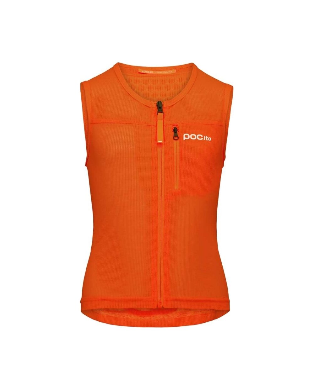 A Pocito termékcsalád (Poc biztonsági vonala gyerekeknek) részeként a mellény proaktív védelmet nyújt – jól láthatóan fluoreszkáló színe van, így a gyermek láthatóbbá válik a lejtőn, és csökkenti az ütközés kockázatát.
