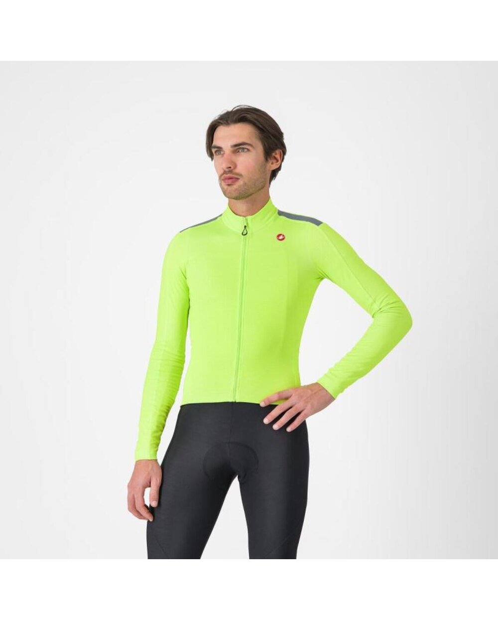 Közepes vastagságú, gyengéden szigetelt jersey kiváló nedvességelvezetővel, funkcionális szabással és 360°-os fényvisszaverő elemekkel