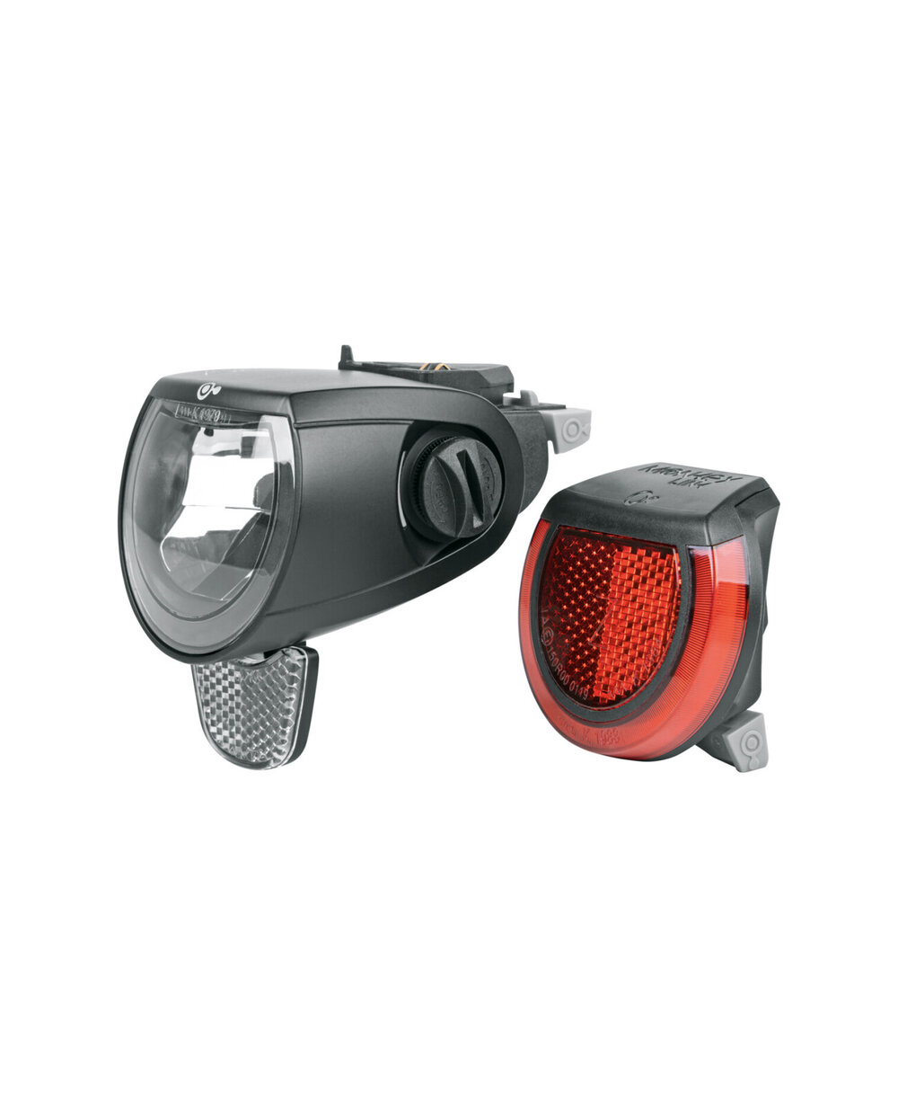 Az első lámpa K-reflektorral van felszerelve nappali menetfénnyel és távolsági fényszóró funkcióval. A világítás szögben állítható, és 150 LUX (tompított fényben 110 LUX) teljesítményt kínál, ami kiváló kilátást biztosít. A hátsó lámpa féklámpával van felszerelve a nagyobb biztonság érdekében vezetés közben. Ezenkívül a rendszer lehetővé teszi az okostelefonok gyors töltését a 12 W-os USB-C porton keresztül. Ez a világítási rendszer kizárólag MonkeyLink-tartókkal felszerelt e-biciklikre van előre telepítve, ami nagyban megkönnyíti az összeszerelést és a használatát.Jellemzők: