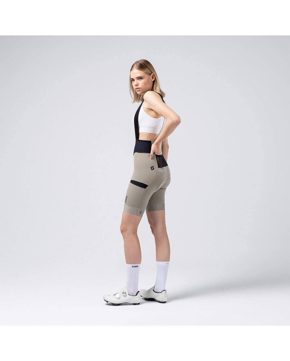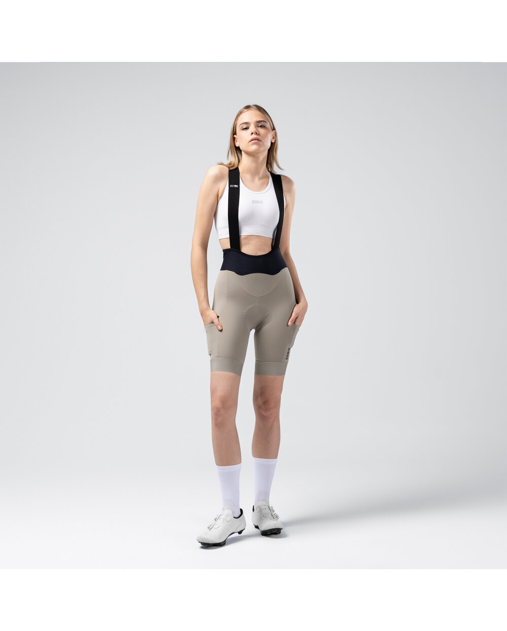 Rövid kerékpáros nadrág kantárral - bézs