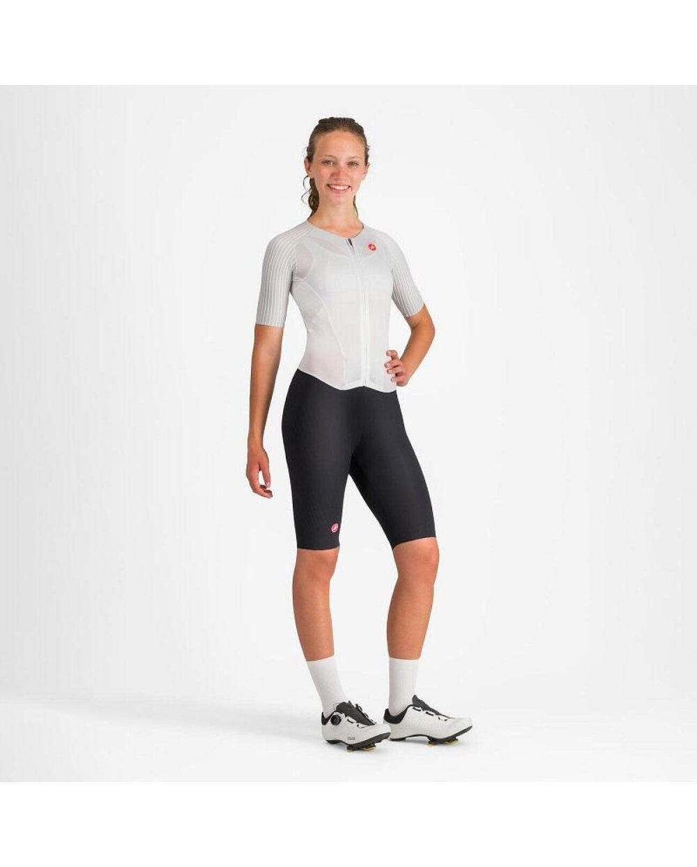 MI AZ / TERMÉK TULAJDONSÁGAI Nem csak egy frissítés. Ikonikus Free Sanremo öltönyünk forradalmi átalakítása Legkeresettebb öltönyünk evolúciója Anyagok és varratok elosztása CFD-analízis alapján A vállakon és az ujjakon speciálisan kifejlesztett bordás anyag csökkenti a versenysebesség melletti ellenállást és jelentősen csökkenti a CdA együtthatót Belső jéghűtés a nyakon az optimális kényelem érdekében, a forró fény megkönnyítése érdekében2 zsebek másolata a hát és a bennük lévő zselék vagy rudak nem pattognak menet közben A CASTELLI Sanremo elülső nyílás megkönnyíti az aerodinamikus pozícióban való vezetést és kiegyensúlyoz futás és úszás közben, ugyanakkor megkönnyíti a kis igényt és a szellőzést extra meleg futási körülmények között aerodinamikailag optimalizált anyag Forza2 Stretch a maximális kényelem és aerodinamikai előny érdekében A nadrág végén található szilikon markolat megakadályozza, hogy a nadrág felcsavarjon. a kerékpárt, de alig érzi futás közben Védelmi faktor UPF Színek: 010 fekete, 101 fehér/fekete, 513 éjszakai árnyékok/élénk narancs Méret: XS-XL Súly: 214 g Hőmérséklet tartomány: 15 - 40°C Vágás: versenyzés Ez nem csak egy frissítés. Az ikonikus Free Sanremo női jumpsuit forradalmi módosítása. Amikor 2014 nyarán piacra dobtuk az első teljes cipzáras, rövid ujjú öltönyünket, CASTELLI úttörő szerepet játszott a sportban, és megváltoztatta a triatlonosok öltözködési és versenyzési módját. Ma már szinte senki nem versenyez másban, mint egy rövid ujjú overálban. Az elmúlt 10 év során számos módosítást hoztunk ezen az öltözéken az illeszkedés, a funkcionalitás és a sebesség tekintetében. Merjük kijelenteni, hogy a legújabb verzió ismét felállítja a mércét. Egy olyan sportban, ahol az aerodinamika kulcsfontosságú, és ahol minden részlet optimalizálva van, nem akar semmit a véletlenre bízni a verseny napján. A Free Sanremo 3 teljes újjászületése az ujjak és a vállak teljes újratervezésével kezdődik. Az órákon át tartó CFD-elemzés és a szélcsatornás tesztelés áttörő aerodinamikai javulást mutatott, elsősorban az ujjakon és a vállakon található speciálisan kifejlesztett bordás anyagnak köszönhetően. A Forza2 Stretch anyag kifinomult dombornyomott szerkezettel rendelkezik, amely pozitív hatással van a lábak körüli levegő keringésére. De nem állunk meg az aerodinamikánál. Az új kezeslábas a legmelegebb napokon is biztonságban tartja magát. A nyakba integrált jégzsebbel ellátott törzs könnyű és légáteresztő anyaga nem csak az Ali Drive-ot kell leküzdenie az októberi hawaii hőségben, hanem minden nagy melegben zajló versenyen is. A Sanremo azt jelenti, hogy a jumpsuit elöl teljesen kicipzározható az extra szellőzés és a könnyebb hozzáférés érdekében. A hátsó zsebben elegendő sporttáp elfér. A Free Sanremo olyan, mintha a siker hullámát lovagolná meg.