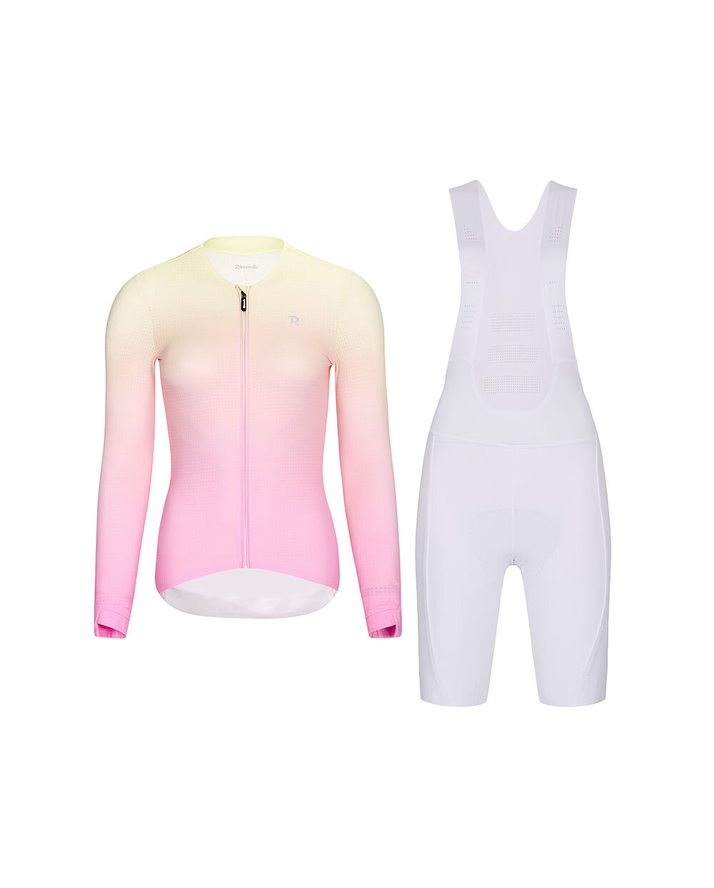 A Rivanelle ELEVATE + NOVEL PRO női kerékpáros szett ideális választás azoknak a kerékpáros hölgyeknek, akik a teljesítmény, a kényelem és a modern stílus ötvözetét keresik edzések és hosszú túrák során egyaránt. A szett egy ELEVATE hosszú ujjú nyári kerékpáros mezből áll rózsaszín/többszínű kombinációban, valamint egy NOVEL PRO fehér színű, vállpántos rövid kerékpáros nadrágból, amelyek együtt funkcionális és elegáns ruhát alkotnak utazáshoz és edzéshez egyaránt.