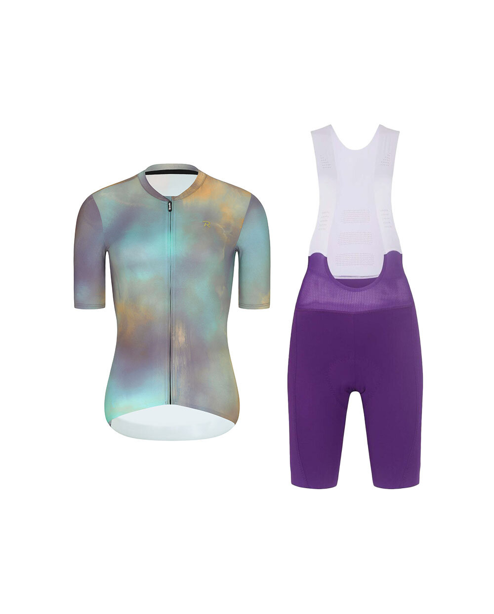 Ez a szett ideális választás azoknak a kerékpárosnőknek, akik a funkcionalitást, a kényelmet és a markáns stílust szeretnék ötvözni. A lila-arany mez és a lila nadrág kombinációja modern és ízléses összeállítást alkot, amelyben minden kilométeren magabiztosnak érezheti magát.