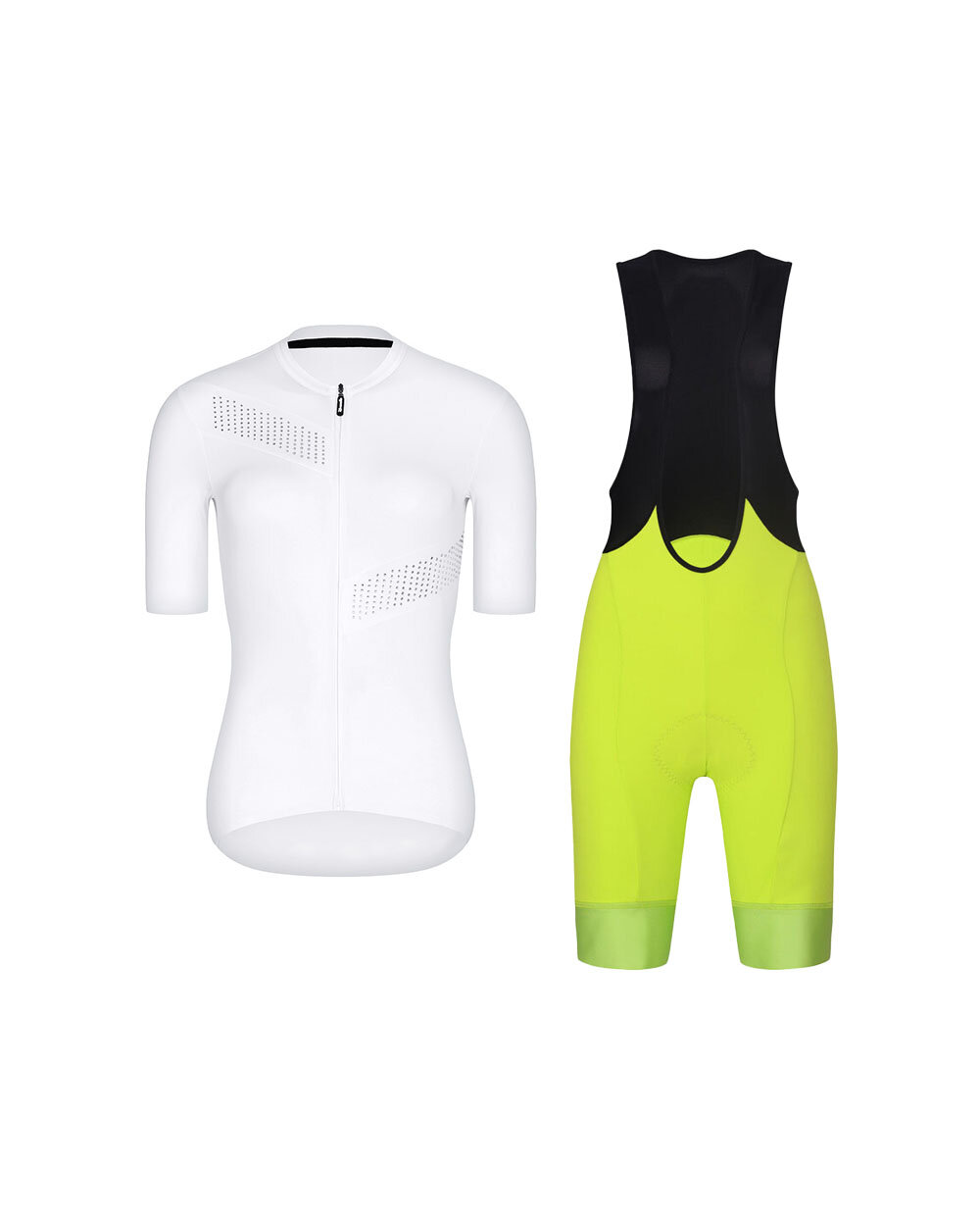 A Rivanelle CRYSTELLE + ACTIVE ELITE női kerékpáros szett elegáns megjelenést, funkcionális anyagokat és kényelmet ötvöz minden kerékpározás során. Ezt a stílusos szettet a fehér színű, rövid ujjú Rivanelle CRYSTELLE kerékpáros mez és a sárga-fekete színű, vállpántos Rivanelle ACTIVE ELITE rövid kerékpáros nadrág alkotja.