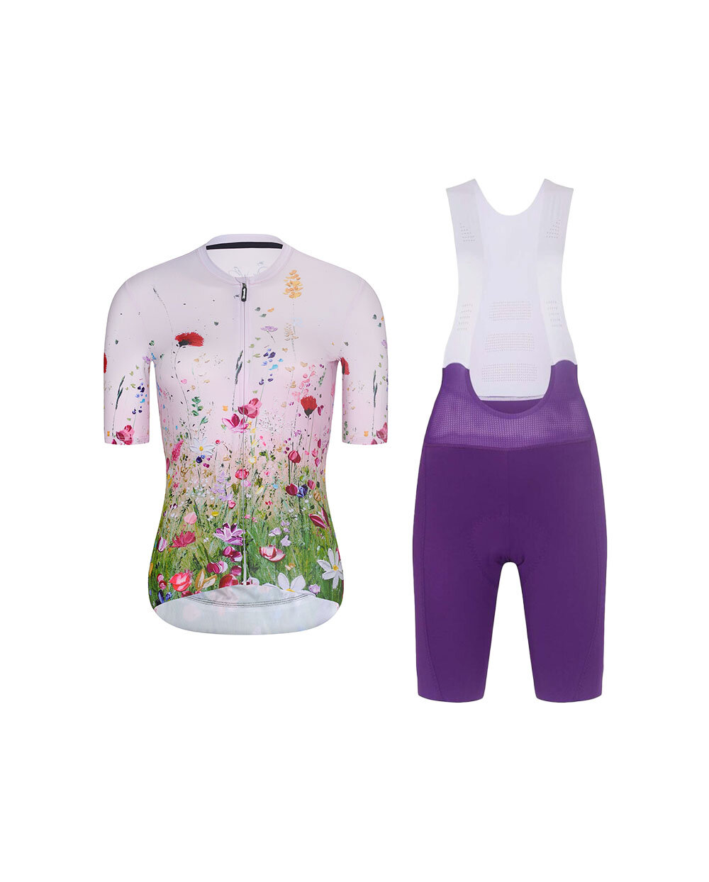 A Rivanelle IN BLOOM / NOVEL PRO női kerékpáros szett művészi dizájnt, kiváló kényelmet és funkcionális kivitelezést ötvöz minden olyan kerékpárosnő számára, aki stílusosan szeretne kinézni a kerékpárján, és közben a lehető legkényelmesebben szeretne érezni magát. Az IN BLOOM rózsaszín és többszínű nyomtatott mintájú mez és a NOVEL PRO lila színű, vállpántos rövidnadrág kombinációja harmonikus, nőies és teljesítményorientált ruhát alkot edzésekhez és hosszú túrákhoz egyaránt.